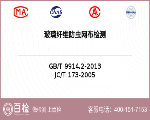 玻璃纖維防蟲網布檢測項目詳情1、玻璃纖維防蟲網布 JC/T 173-2005 6.10---玻璃纖維防蟲網布外觀質量項目檢測